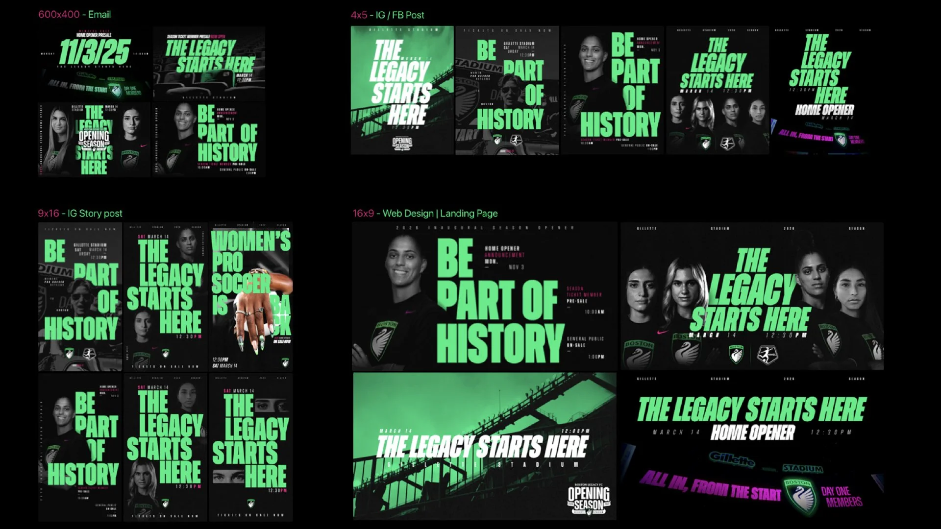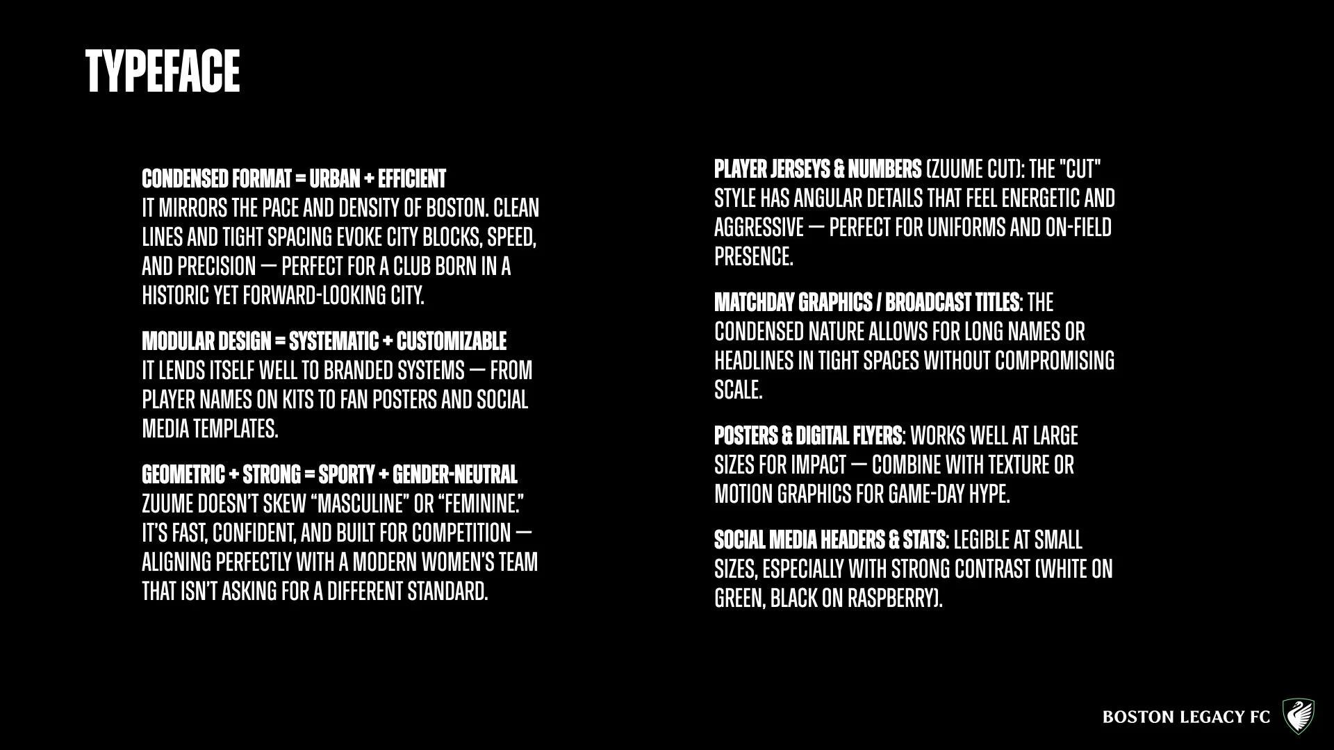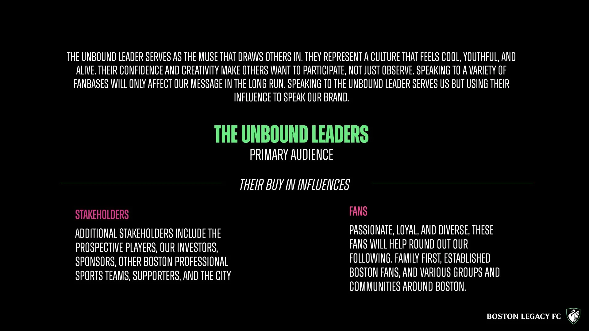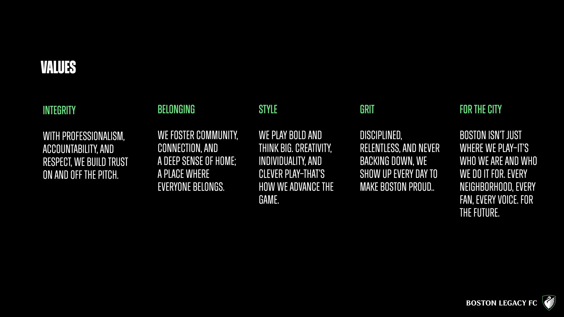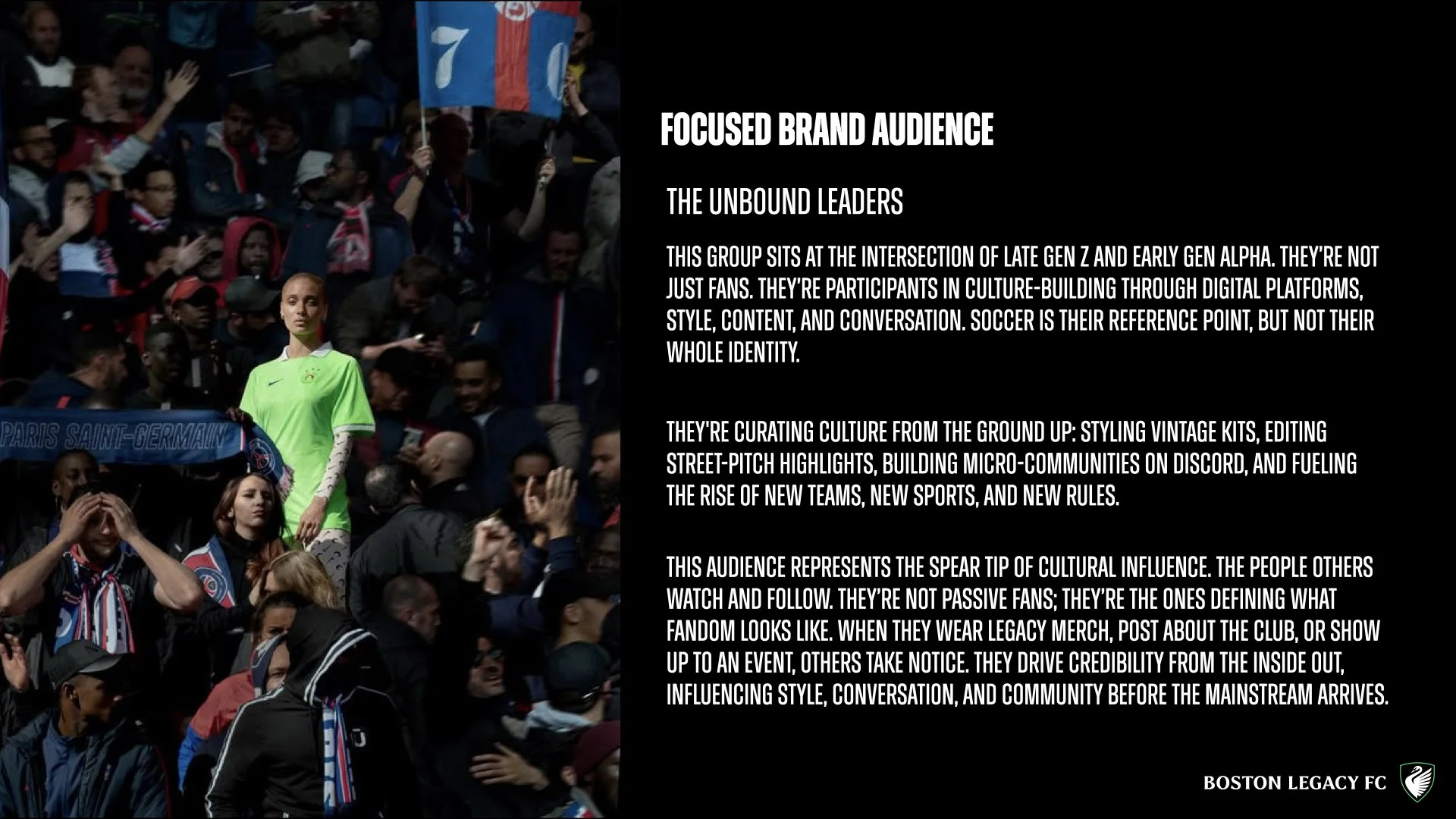 When I arrived at Boston Legacy as Senior Creative Director, I was tasked with rebuilding the brand identity. The club had gone through naming challenges and a marketing campaign that missed the mark, so it was clear the brand needed a reset.
